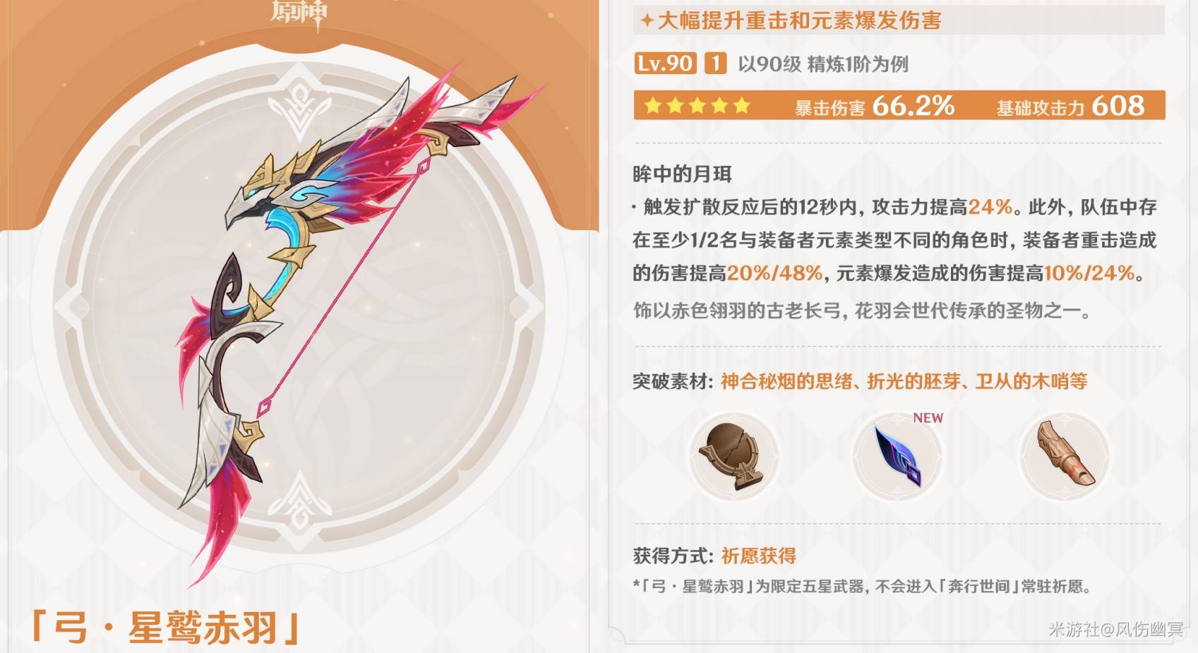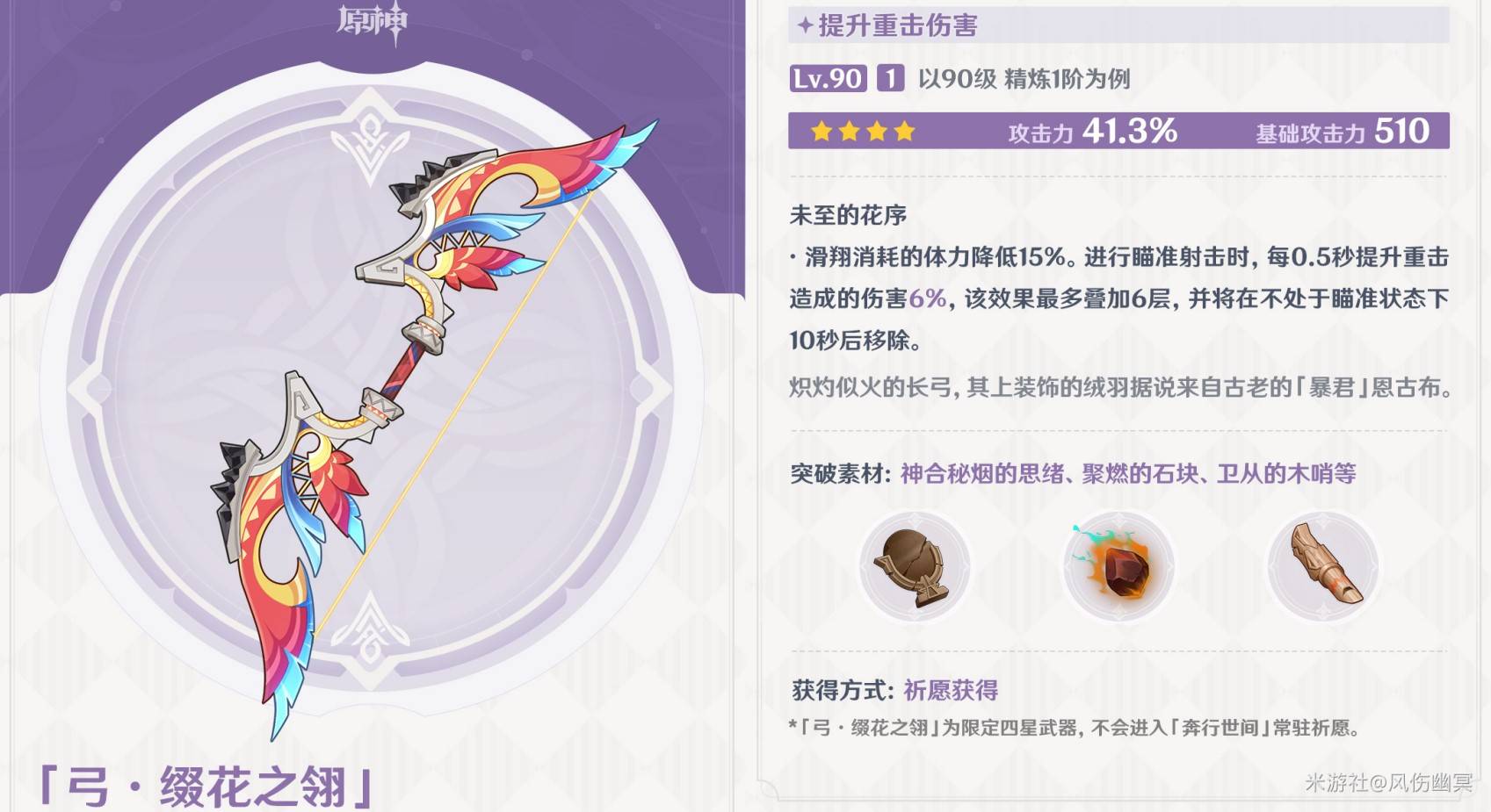 根据情况抽取,泛用性高,但之前的弓也不错!如果已经有其他五星弓,可以不抽。除非已经有恰斯卡,最好使用专属武器。