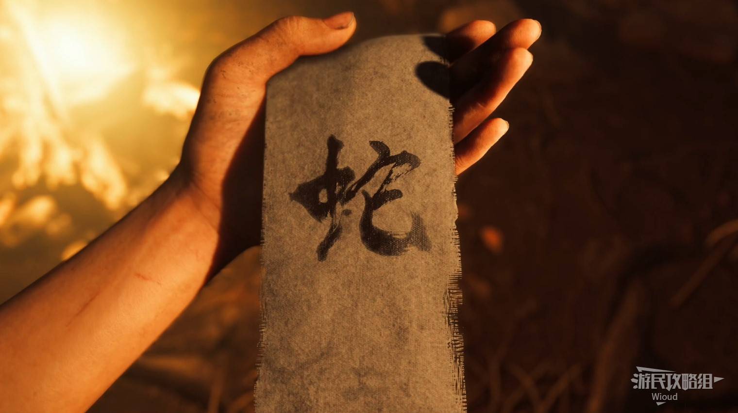来到村庄后,走到戏弄马匹的武士旁触发战斗,接着走向前方唯一有亮光的建筑。在这里,玩家将见到第一个仇敌——【蛇】。这一战斗主要是教学性质,同时也营造了紧张的氛围。