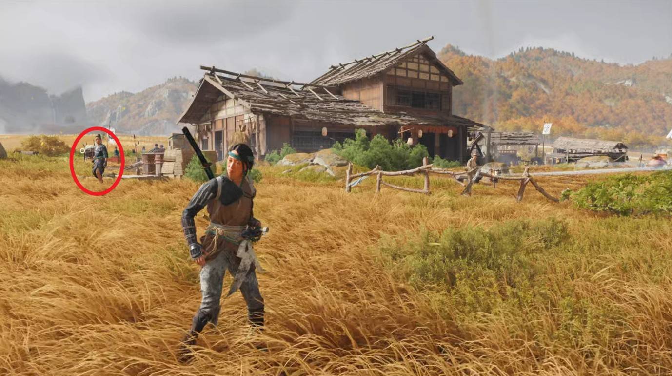 接下来,前往地图指引的黄圈区域,进入营地,你会找到被绑的大治郎。在这里,消灭所有敌人,剧情结束后点燃旁边的篝火,然后与大治郎互动。