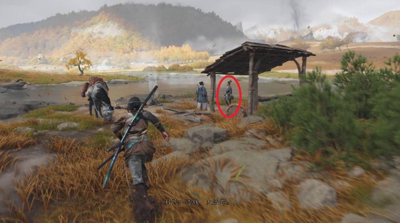 在目的地的河边,你会遇到一个被村民逼着还钱的大治郎。与他对话,帮助他摆脱村民的纠缠,让他能够顺利去到富良野客栈。