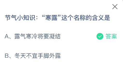 以上就是节气小知识:“寒露”这个名称的含义,支付宝蚂蚁庄园2025年10月8日答案最新,更多精彩内容,请点击关注本站更新!
