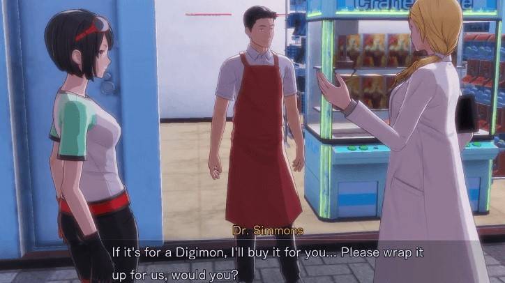 4. 接下来,与穿红色围裙的店员对话,准备购买手办。尽管手办的价格让人咋舌,但别担心,西蒙斯博士会在关键时刻给予你支持。
