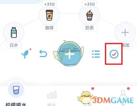 2. 在应用的主页中,找到并点击页面右上角的「√」符号,或者选择「饮水打卡」图标,进入打卡页面。