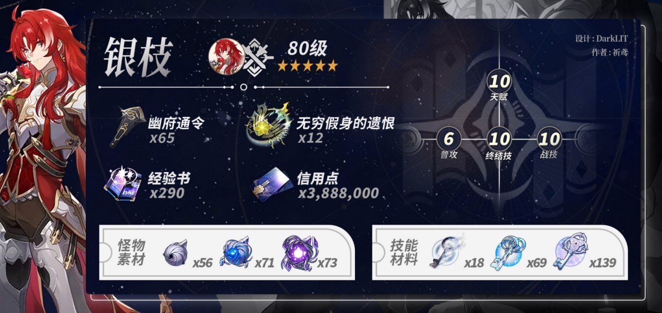 银枝养成材料一览